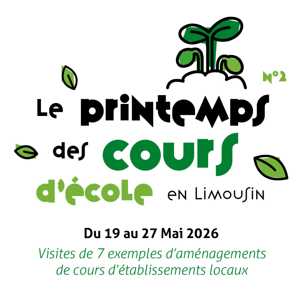 Du 19 au 27 mai 2026, les 3 CAUE du Limousin (Corrèze, Creuse, Haute-Vienne) vous invitent à découvrir les aménagements de cours d’établissements locaux. – Inscriptions à venir – Lutte contre les îlots de chaleur, égalité filles/garçons, gestion intégrée des eaux pluviales, biodiversité, convivialité […]